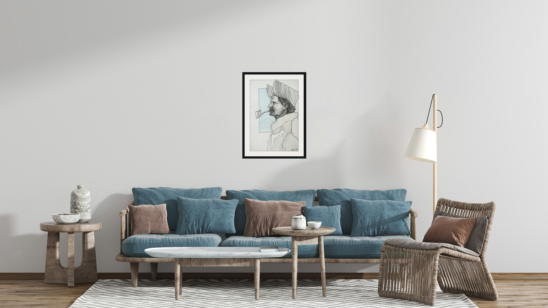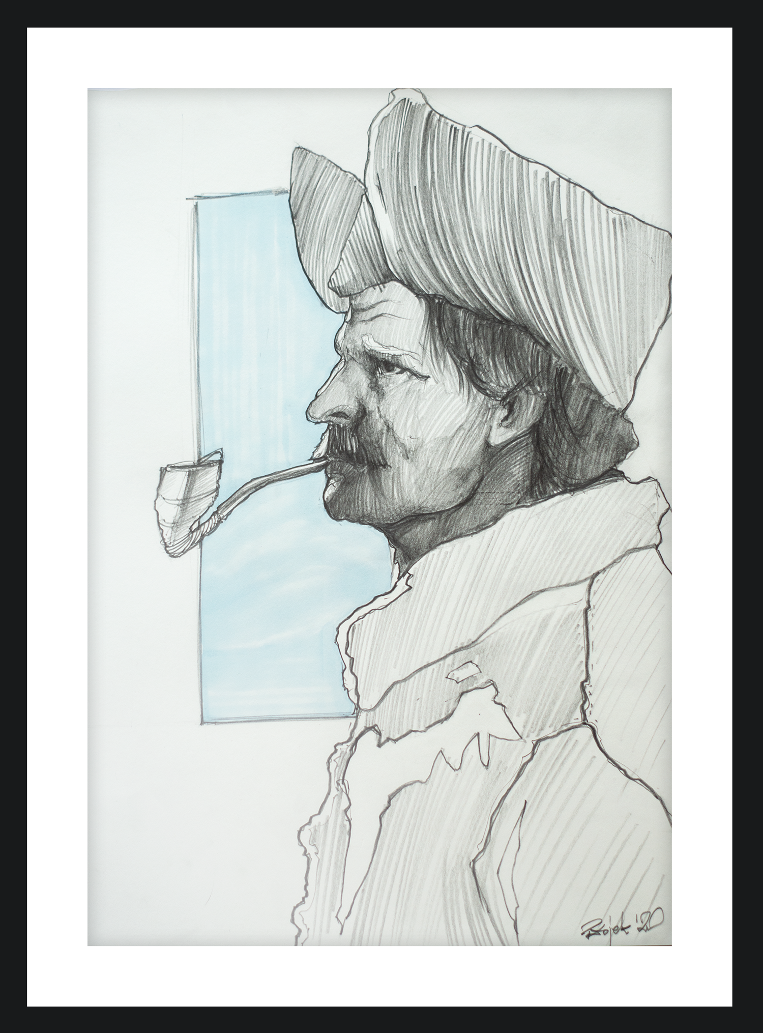Graphite and blue marker